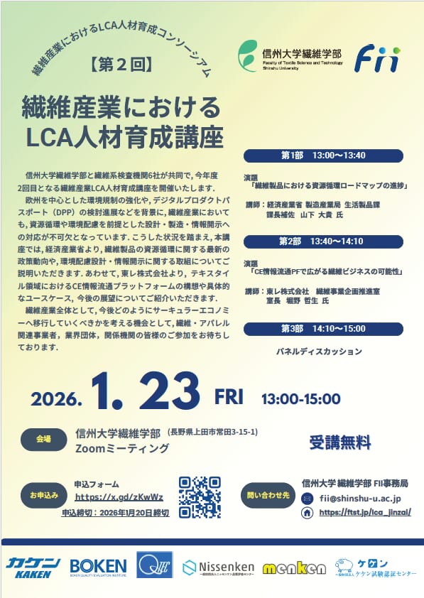 ~信州大学繊維学部Fii事務局からのお知らせ~「第2回 繊維産業におけるL…